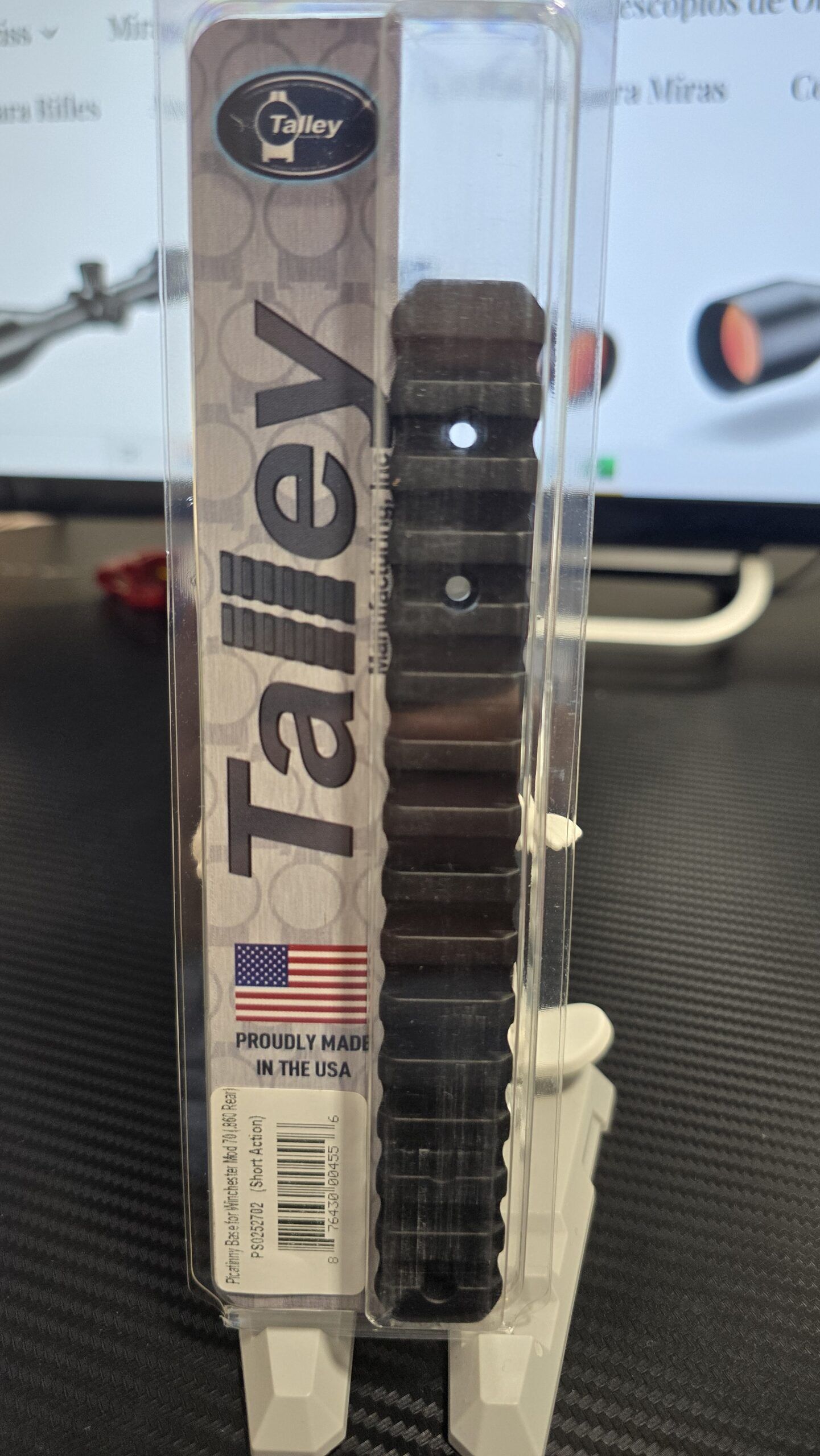 - Los rieles Picatinny Winchester modelo 70 de Talley Manufacturing, fabricados en Estados Unidos para acciones de longitud estándar con espaciado de orificios tanto traseros como delanteros de 0.860”, están mecanizados completamente a partir de una aleación de la serie 7000 de alto grado y protegidos con un anodizado de capa dura a 65 Rockwell, lo que garantiza que la artesanía de estos rieles Picatinny dure toda la vida útil de su arma de fuego. Estos rieles Picatinny Winchester modelo 70 están diseñados y fabricados con precisión para adaptarse a su arma de fuego con las tolerancias de fabricación más estrictas de la industria. Estos rieles Picatinny brindan una plataforma de montaje para todos los montajes ópticos que se han diseñado de acuerdo con las especificaciones de rieles Picatinny MIL-STD-1913, incluidos todos los montajes de miras Talley Picatinny.Distancia de centro a centro tornillos delanteros: 0.860″