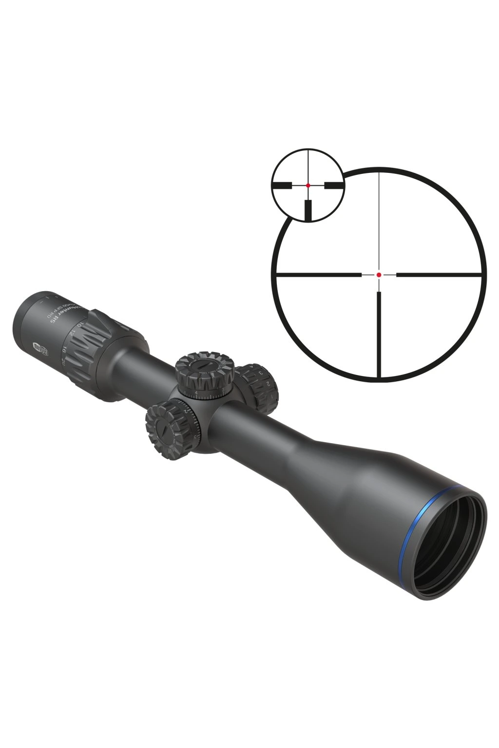 Con retícula en el segundo plano focal (SFP) que todo mundo quiere: 4C iluminada, es una retícula clásica de caza muy utilizada en las diferentes modalidades cinegéticas. Está compuesta por una cruz clásica que incorpora las tres líneas inferiores con mayor grosor y una línea superior más fina. Gracias a este diseño se consigue una cruz que permite fijar el objetivo de forma rápida y mantener la visión del entorno clara, gracias a que no interfiere mucho en la visión por su sencillez. En el centro de la cruceta se dispone de líneas más finas que se encuentran en el centro dejando un pequeño espacio hasta el punto iluminado.
